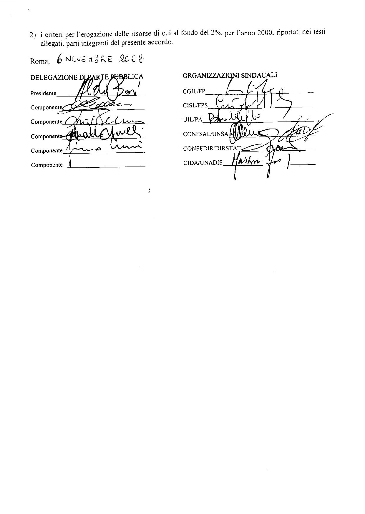 Il testo dell?ccordo allegato al presente comunicato. (Pagina 1) (Pagina 2) (Pagina 3) (Pagina 4) (Pagina 5) (Pagina 6) (Pagina 7) 30 Ottobre 2002 Comunicati - DIRSTAT/CONFEDIR: manipolati i dati sugli aumenti delle retribuzioni degli statali dal 1998 al 2001 (Visualizza) 25 lugio 2002 Notizie flash Dirstat: Ultime notizie sulla Vicedirigenza (Visualizza) 23 luglio 2002 Comunicato - Il grande disegno della DIRSTAT volto a restituire dignit professionale ai quadri direttivi pubblici si realizzato (Visualizza) 8 luglio 2002 Comunicato - Approvati i criteri di valutazione delle posizioni dirigenzieli di II fascia (Visualizza) 30 giugno 2002 - DELIBERA DEL CONSIGLIO NAZIONALE 29 e 30 giugno 2002 Consiglio Nazionale del SIPDAD 28 Maggio 2002 Articoli Riforma Amministrativa (Visualizza) Congresso della Confedir 31 Maggio 2002 (Visualizza) COMUNICATO URGENTE sulla Vicedirigenza del 19/04/2002 (Visualizza) 18 aprile 2002 04 Marzo 2002 Comparto dei Ministri - Commissione paritetica per l'istituzione nell'area "C" di una separata area di professionisti - relazione finale (Scarica) 28 marzo 2002 - COMUNICATO 20 marzo 2002 Protocollo di intesa per gli uffici delle dogane (Visualizza) 18 Marzo2002 COMUNICATO STAMPA - 19 marzo presidio DIRSTAT a sostegno della vicedirigenza. (Visualizza) 1 Febbraio 2002 Comunicato del Presidente Girolamo Zarmati (Visualizza) 26 Gennaio 2002 Comunicato Stampa DIRSTAT/CONFEDIR sulle dichiarazioni di Bassanini in merito alla vicedirigenza (Visualizza) 24 Gennaio 2002 LA CAMERA APPROVA LA VICEDIRIGENZA (Visualizza) 18 Gennaio 2002 Comunicato Urgente: 21 Dicembre 2001 Messaggio augurale di buone feste (Visualizza) 5 Dicembre 2001 Flash 2001 n.19 - Lusinghiero risultato elettorale della CISAL-INTESA alle elezioni per le RSU (Visualizza pdf) 3 Dicembre 2001 Finalmente la Vicepresidenza una realt? Una vittoria della Dirstat contro tutte le OO.SS. (Visualizza) 17 Novembre 2001 1. Atto Senato n. 699 sulla Vicedirigenza.- Art. 10/bis (Visualizza) 2. Audizione presso la Commissione Affari costituzionali della Camera della Conferdi e della Dirstat per il riordino della Dirigenza Statale e della Vicedirigenza (Visualizza) 3. Posizione della CGIL sulla vicedirigenza. (Visualizza) 11 Novembre 2001 Auguri a Gaetano Marcoccio! (Visualizza) Audizione della DIRSTAT alla I Commissione Permanente Affari Costituzionali del 6 novembre 2001 (Visualizza) 24 Ottobre 2001 Retribuzione di risultato 2000 (Visualizza) 14 Ottobre 2001 Lettera alla CISL (Visualizza) Convocazione del Consiglio Nazionale del SIPDAD (Visualizza) Comunicato Urgente (Visualizza) 23 luglio 2001 Decreti graduatorie procedure di riqualificazione ripartiti per regione - VI (Regioni A-M) (Regioni P-V) - VII - VIII (Regioni A-M) (Regioni P-V) q.f. 27 giugno 2001 Retribuzione di risultato 1999 - (Visualizza) 17 maggio 2001 Sindacati contrari all'area quadri nel pubblico impiego: cade la maschera a CGIL,CISL, UIL ed UNSA. (Scarica) 16 Maggio 2001 Comunicato Urgente TFR (Scarica) * Scarica il file MS Word in formato zip auto-eseguibile | |||||||||